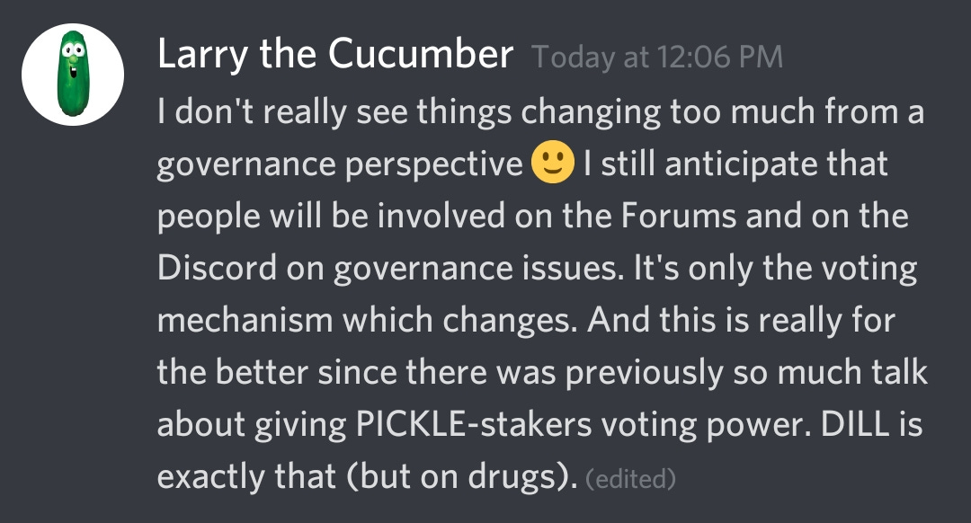 6) There's going to be continued governance through the Dill token. Pickle has a highly active governance community, how do you feel about the Pickle's governance and autonomy moving forwards?